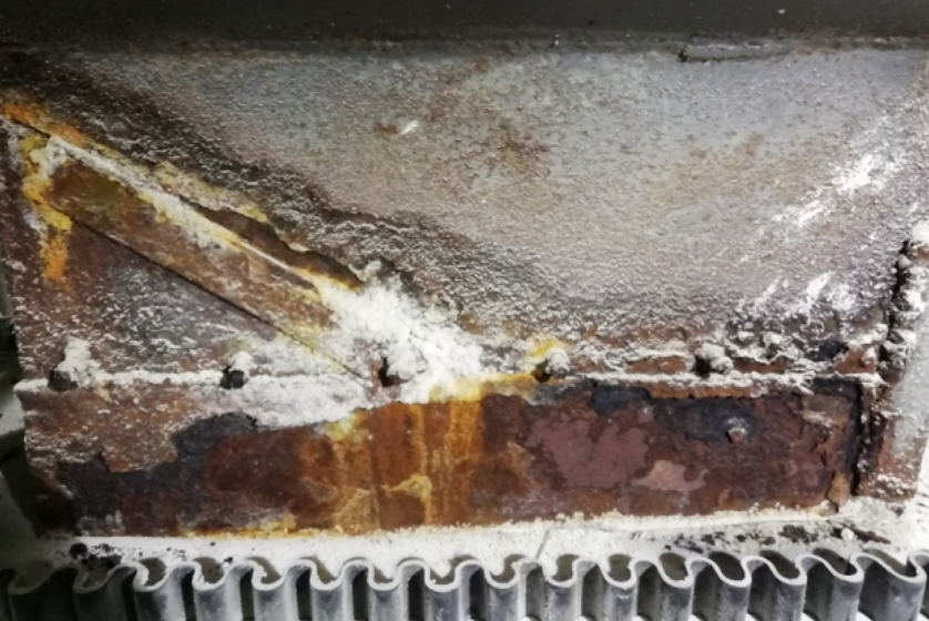 河南兴发昊利达肥业有限公司成立于2012年10月,由湖北兴发化工集团股份有限公司在河南省昊利达化工有限公司的基础上组建而成。经营范围包括:尿素、高端系列复合肥、水溶肥、液氨、甲醇、有机—无机复混肥生产销售、化工机械、科研服务、磷矿石、化工产品、农药、农用薄膜销售。室内主要生产磷酸肥料复合肥产品,常见的种类主要包括磷酸一铵、磷酸二铵、硝酸磷肥、硝酸钾和磷酸二氢钾等。车间湿度较大,大量粉尘附着在原有涂层上吸潮后对涂层造成严重的侵蚀并进一步腐蚀涂层下的钢结构,之前使用的传统涂料对钢结构的防腐效果欠佳,每1-2年就需要对钢结构重新进行防腐维护,造成大量的人力物力浪费,同时对生产以及厂区的安全性造成一定的影响。